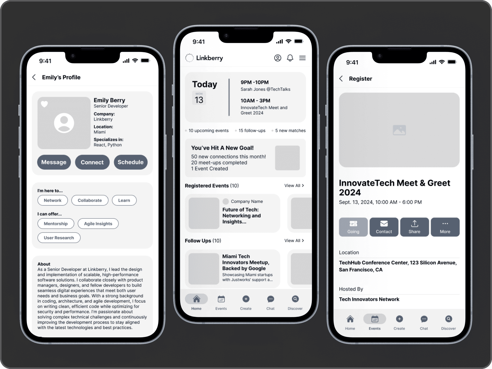 Events: The heart of Linkberry, where users can create, register for, discover, and manage all their event-related activities.
